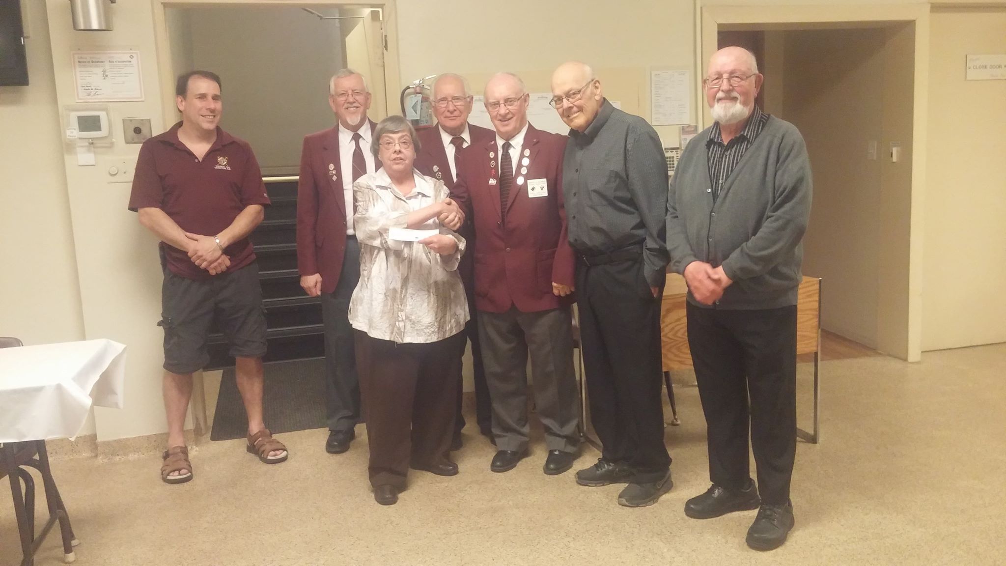 Ladies’ Auxiliary President, Lynda Laverty presents Grand Knight, Paul LeBlanc and Council 1310 a cheque on behalf of the Ladies’ Auxiliary.