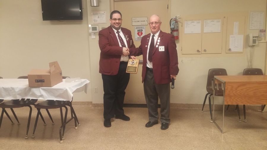 Grand Knight, Paul LeBlanc presents Marcel Denis with the 2019 Knight of the Year Award.