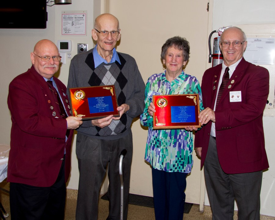 Grand Knight, Paul LeBlanc and Trustee, Norman Gallant present Lloyd Allain and posthumously Ron “CN” LeBlanc with Lifetime Achievement Awards for their dedicated service to the Council. Ella LeBlanc accepted the award in the memory of her husband.