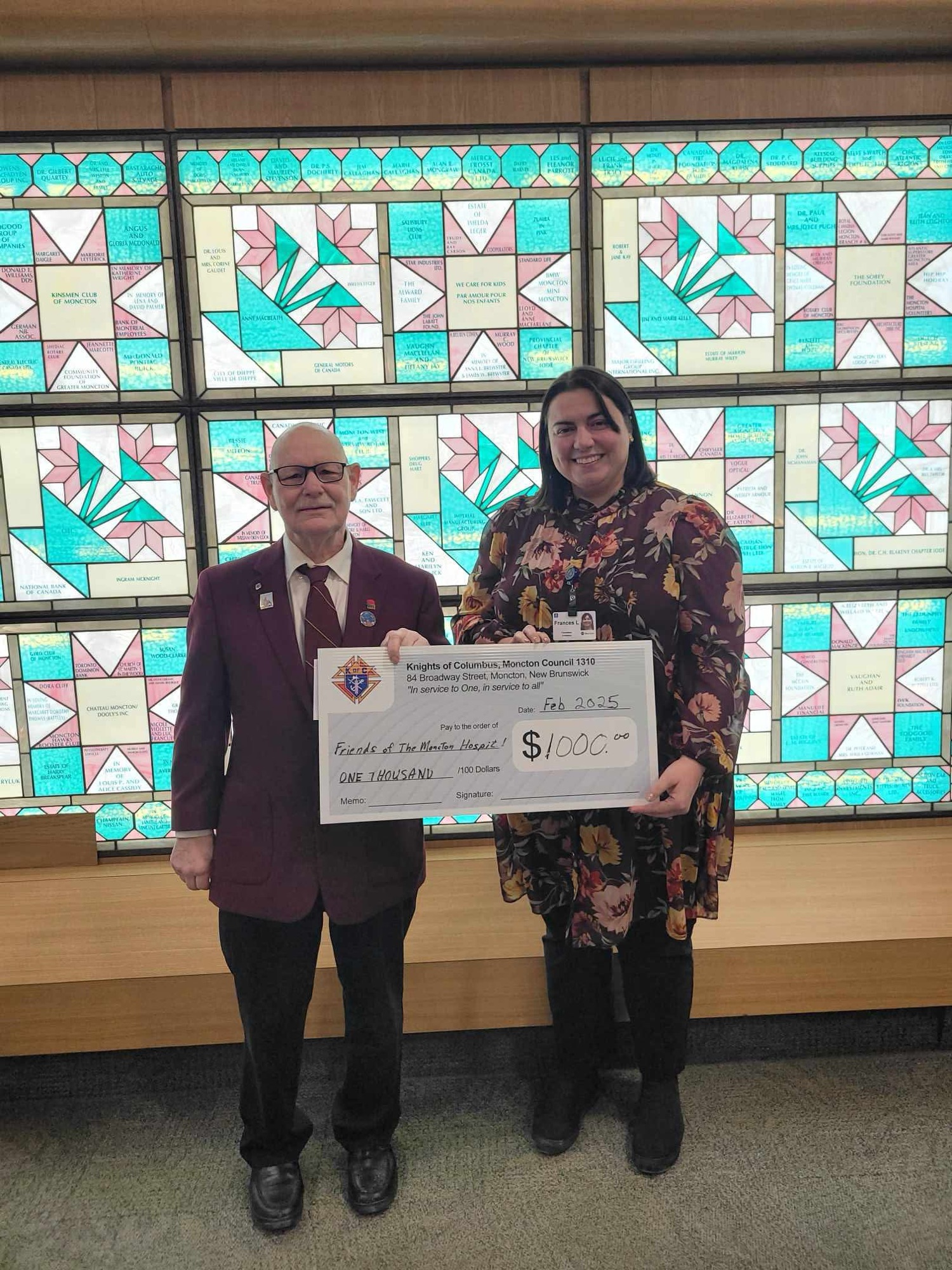 Recently, Council 1310 donated $1,000 to the Friends of the Moncton Hospital Foundation in memory of Past Grand Knight, Lloyd Alain.