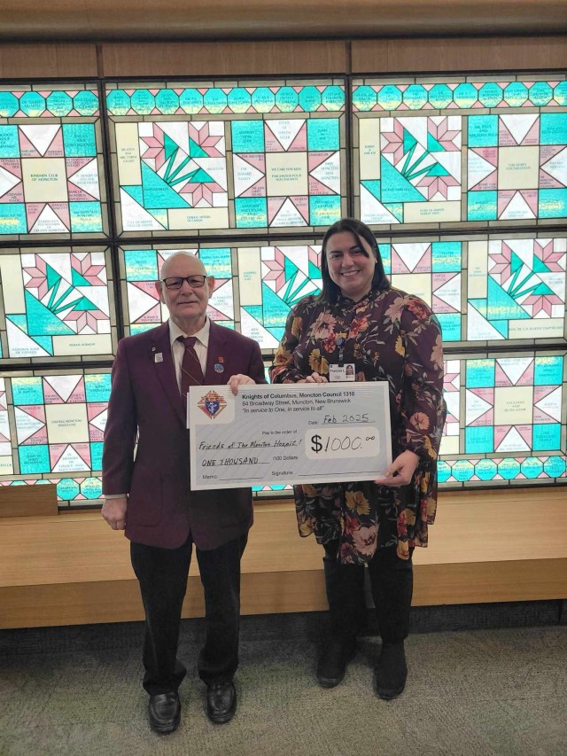 The Knights of Columbus Moncton Council 1310 recently presented a $1,000 donation to Hospice Greater Moncton towards their building fund.