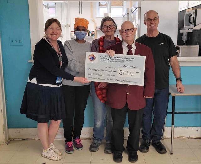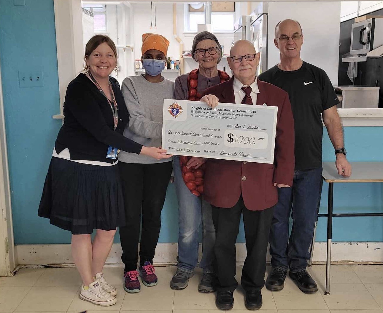 Recently, Grand Knight Norm Gallant presented a cheque for $1,000 to the Beaverbrook School Lunch Program.