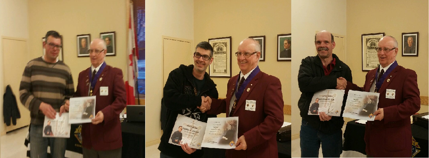 On April 22, Council 1310 Members William Landry, Ben Ouellet and Don Cormier became Fourth Degree Members of the Order. Congratulations Brothers and Sir Knights!