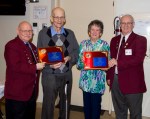 - Grand Knight, Paul LeBlanc and Trustee, Norman Gallant present Lloyd Allain and posthumously Ron “CN” LeBlanc with Lifetime Achievement Awards for their dedicated service to the Council. Ella LeBlanc accepted the award in the memory of her husband.