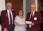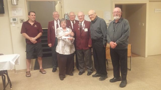 - Ladies’ auxiliary President, Lynda Laverty presents Grand Knight, Paul LeBlanc with a cheque for $1,000 to help the Knights with newly purchased items.