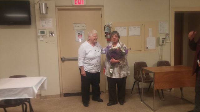 - Ladies’ Auxiliary President, Lynda Laverty presents Auxiliary Member, Dorine Arsenault with a 2017 Member of the Year Award.